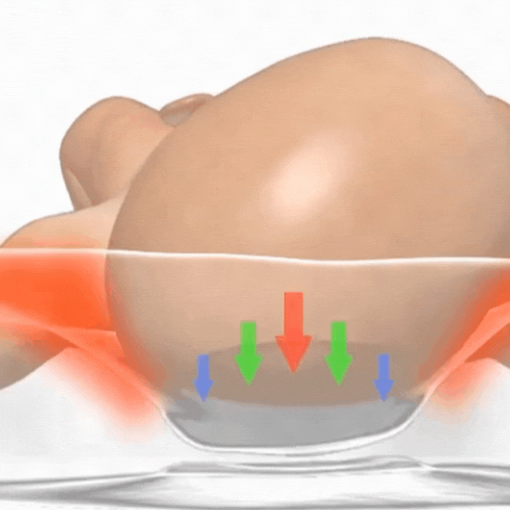 vorzubeugen, besitzt das MiniCloud Babybett eine spezielle Kopfzone, die den Druck gleichmäßig verteilt und die natürliche Rundung des Babyköpfchens unterstützt.